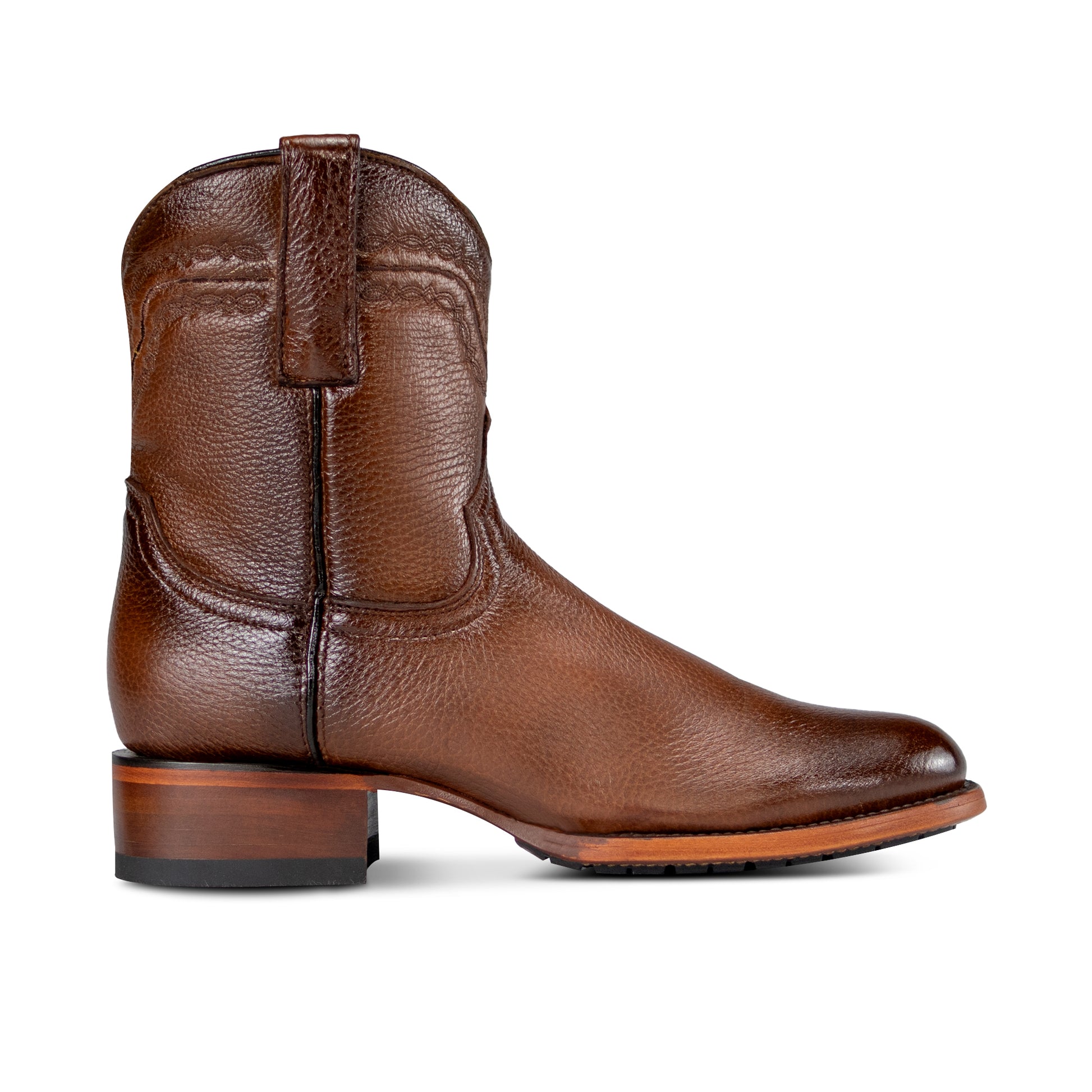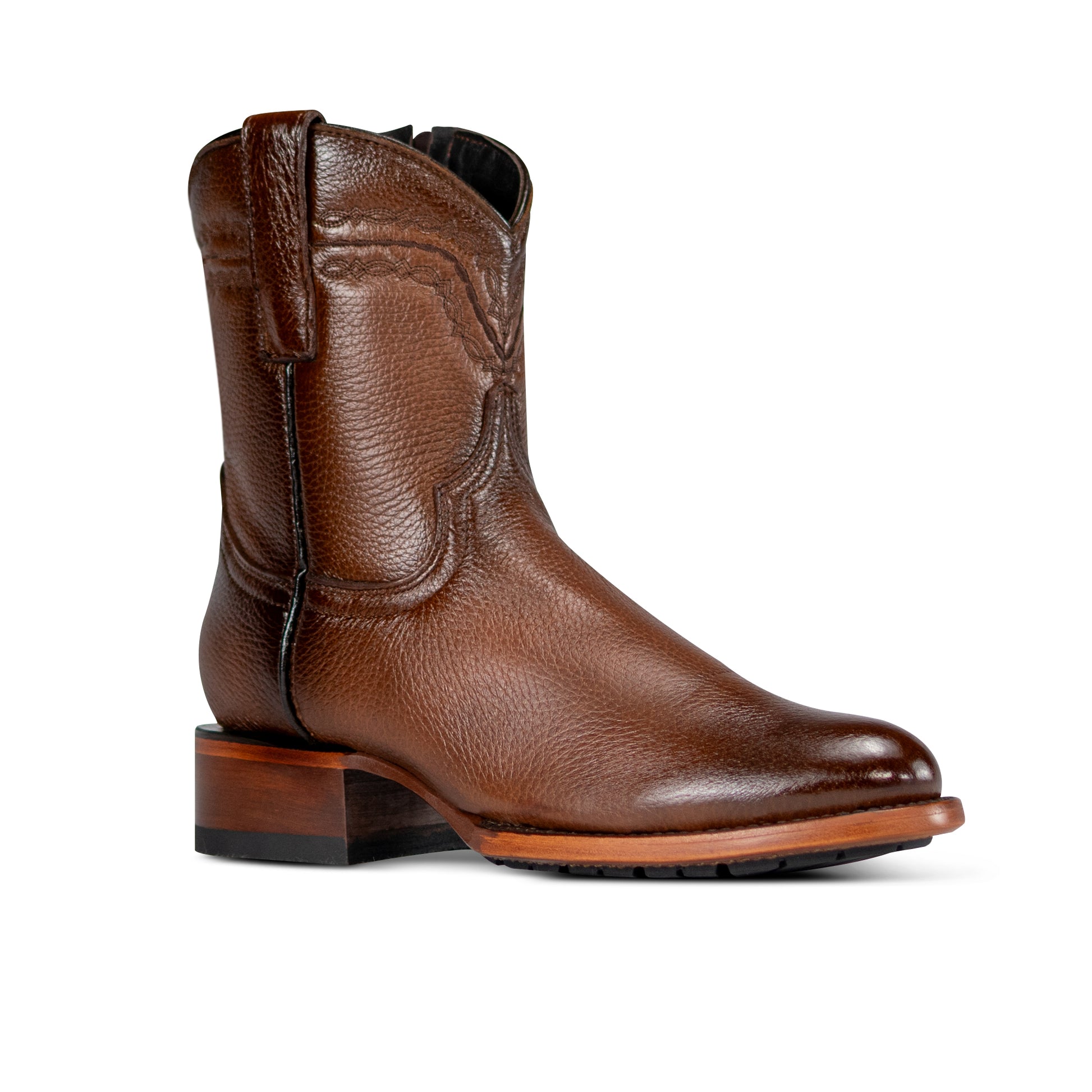 El estilo 1100 en piel original de venado es un estilo único y exclusivo para quienes buscan algo diferente, elegante y de gran calidad. La piel de venado es una de las más suaves del mercado, su textura fina y el brillo de su piel hacen que verdaderamente este calzado resalte ante cualquier otro. La suela de cuero con injerto de tractor antideslizante permite resistencia, comodidad y durabilidad, harán que estas botas sean verdaderamente una experiencia única para tu outfit vaquero-casual.